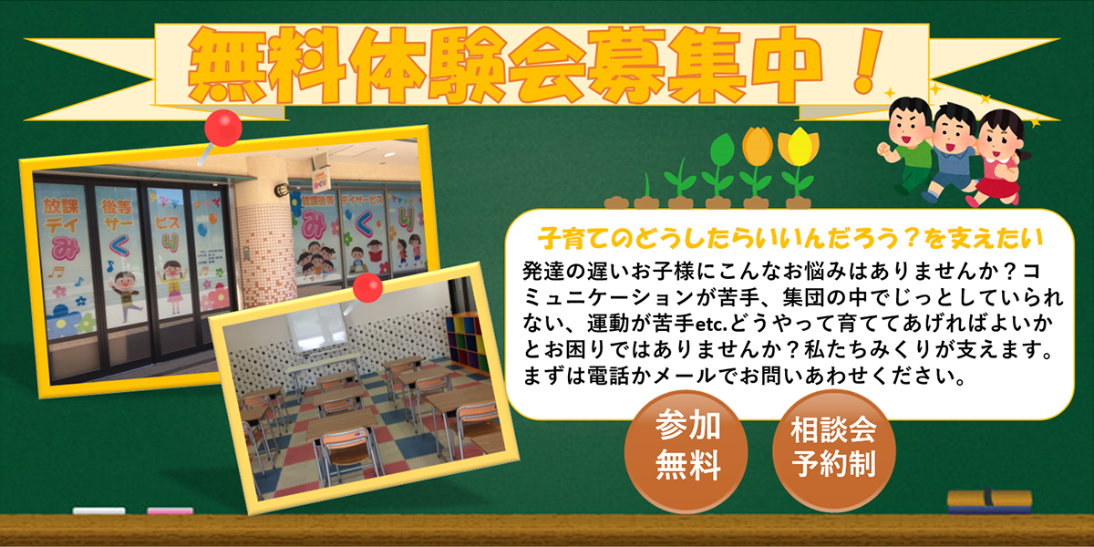 みくりで行う療育についてご納得いただけましたら無料体験をご利用される日時をお教えいただき、無料体験のご予約をさせていただきます。